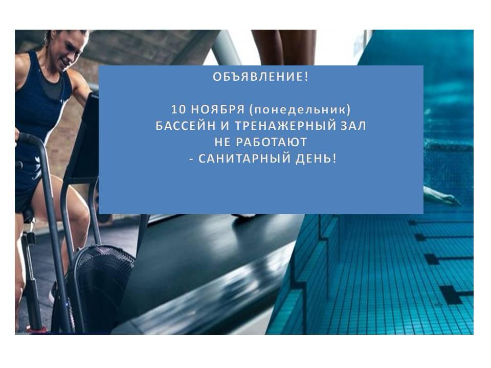 10 ноября бассейн и тренажерный зал не работают — санитарный день!