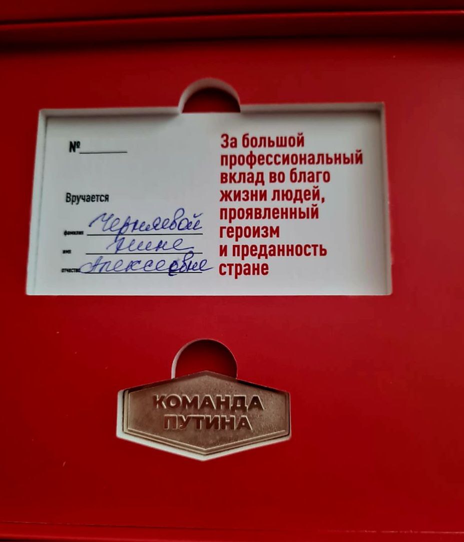 Лауреатом премии “Команда Путина” стала Черняева Нина Алексеевна - директор Центра реабилитации «Волгоград» и председатель общественной организации «Волгоградский областной Союз женщин», за участие в сборе пожертвований для защитников Донбасса во время проведения Вооруженными Силами Российской Федерации специальной военной операции.