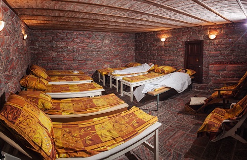 Спелеоклиматическая камера («соляная шахта») — это просторное помещение, стены которого покрыты натуральной солью. Воздух в шахте проходит через соляные блоки и тщательно очищается. Это помогает организму адаптироваться к особым условиям микроклимата и перестроить свою работу.