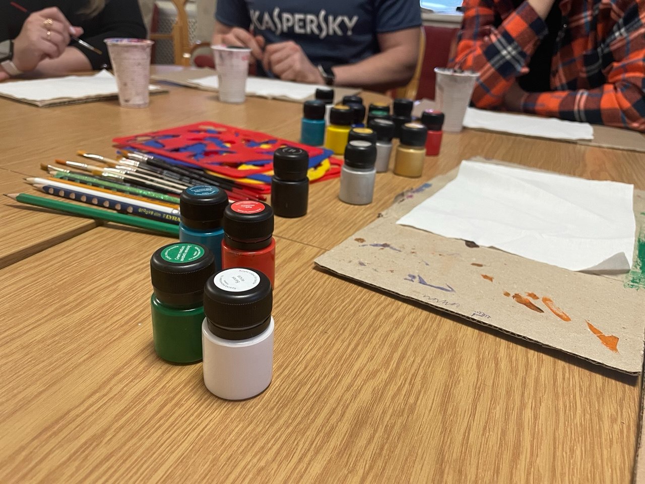 Также команда экопроекта организовала Мастер-класс по кастомизации текстиля, в котором с удовольствием приняли участие сотрудники Центра реабилитации. Теперь мы знаем как можно исправить наличие въевшегося пятна на футболках, джинсах и другой одежде с помощью кистей и красок.