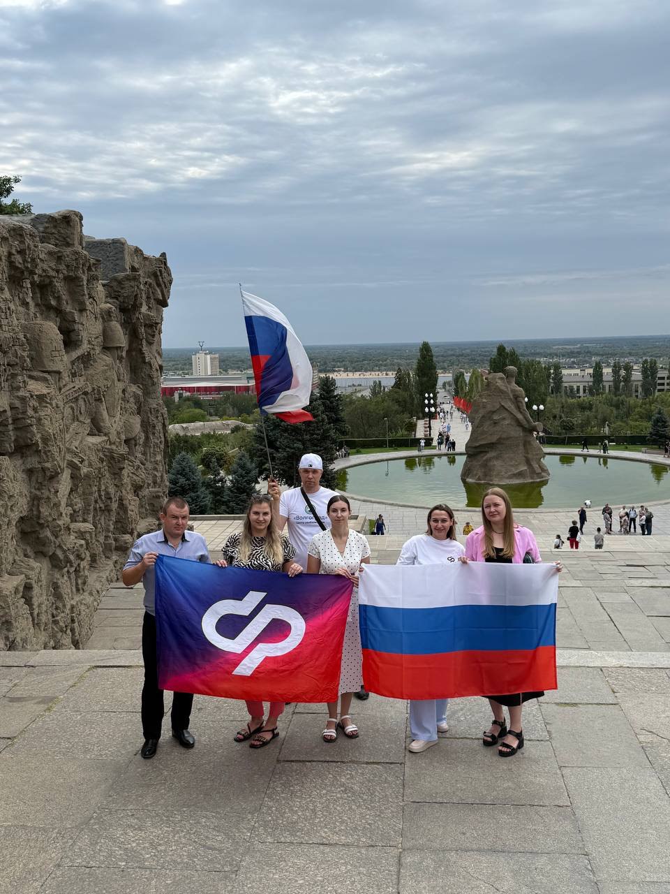 Молодёжный совет ФБУ Центр реабилитации СФР «Волгоград» вместе с активистами Молодежного совета ОСФР по Волгоградской области организовали торжественную встречу у подножия главной высоты России - Мамаева кургана в рамках всероссийской акции "Символ народа". Это место, пропитанное героической историей и памятью о подвиге нашего народа, стало символичной точкой для празднования.