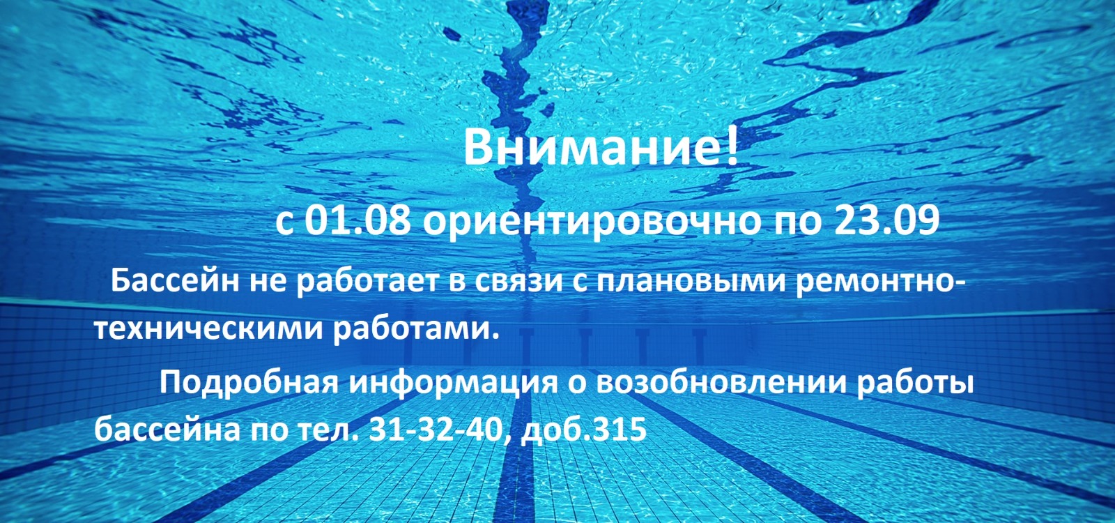 С 1 августа по 23 сентября бассейн не работает