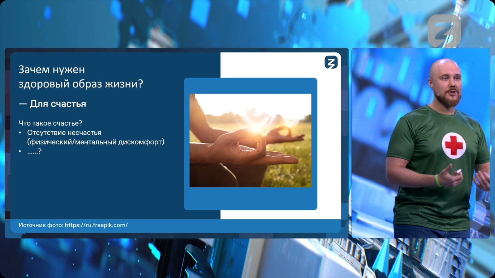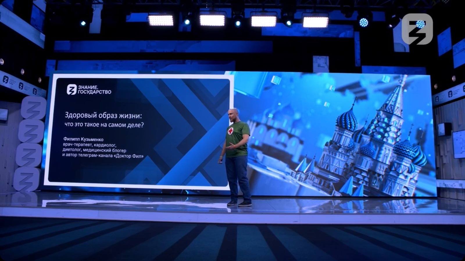 Из региональной студии перед участниками выступил Филипп Кузьменко — врач терапевт, кардиолог, диетолог, a.k.a. Доктор Фил.