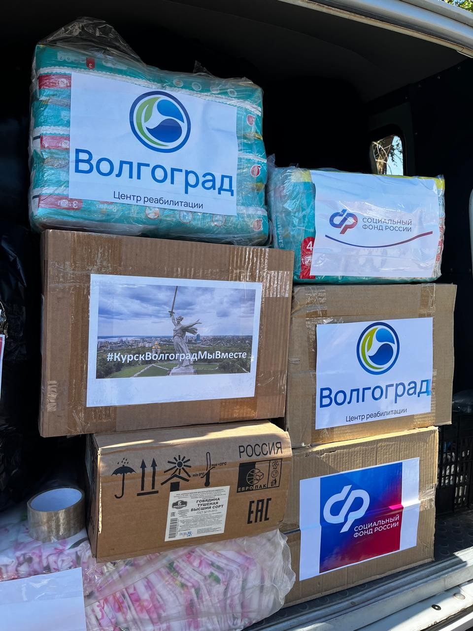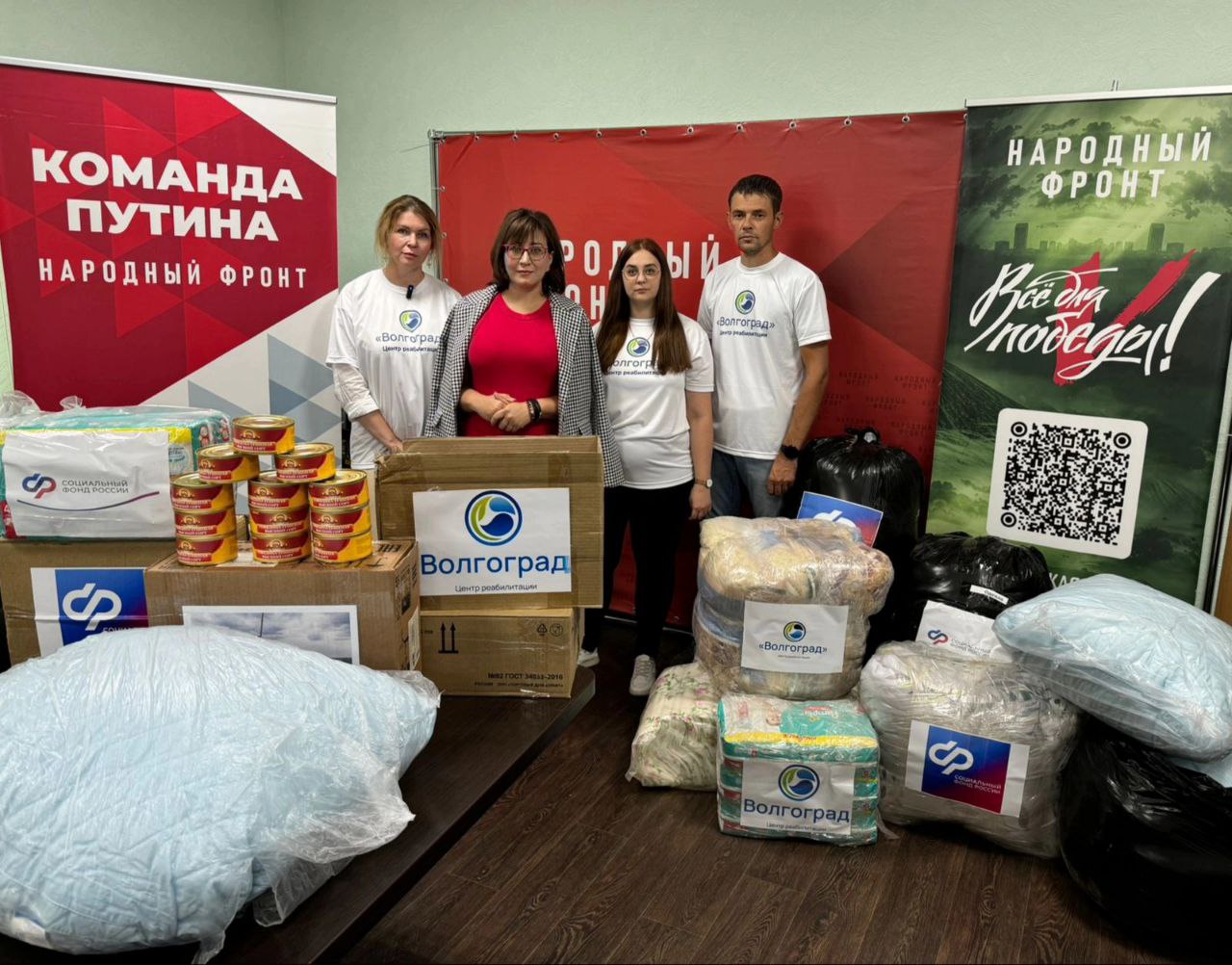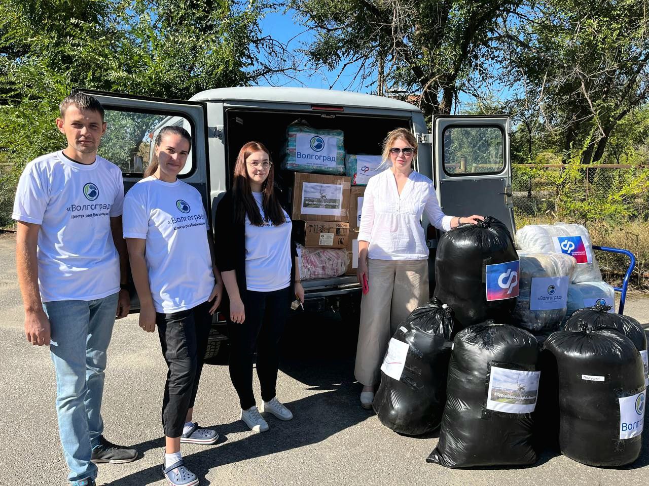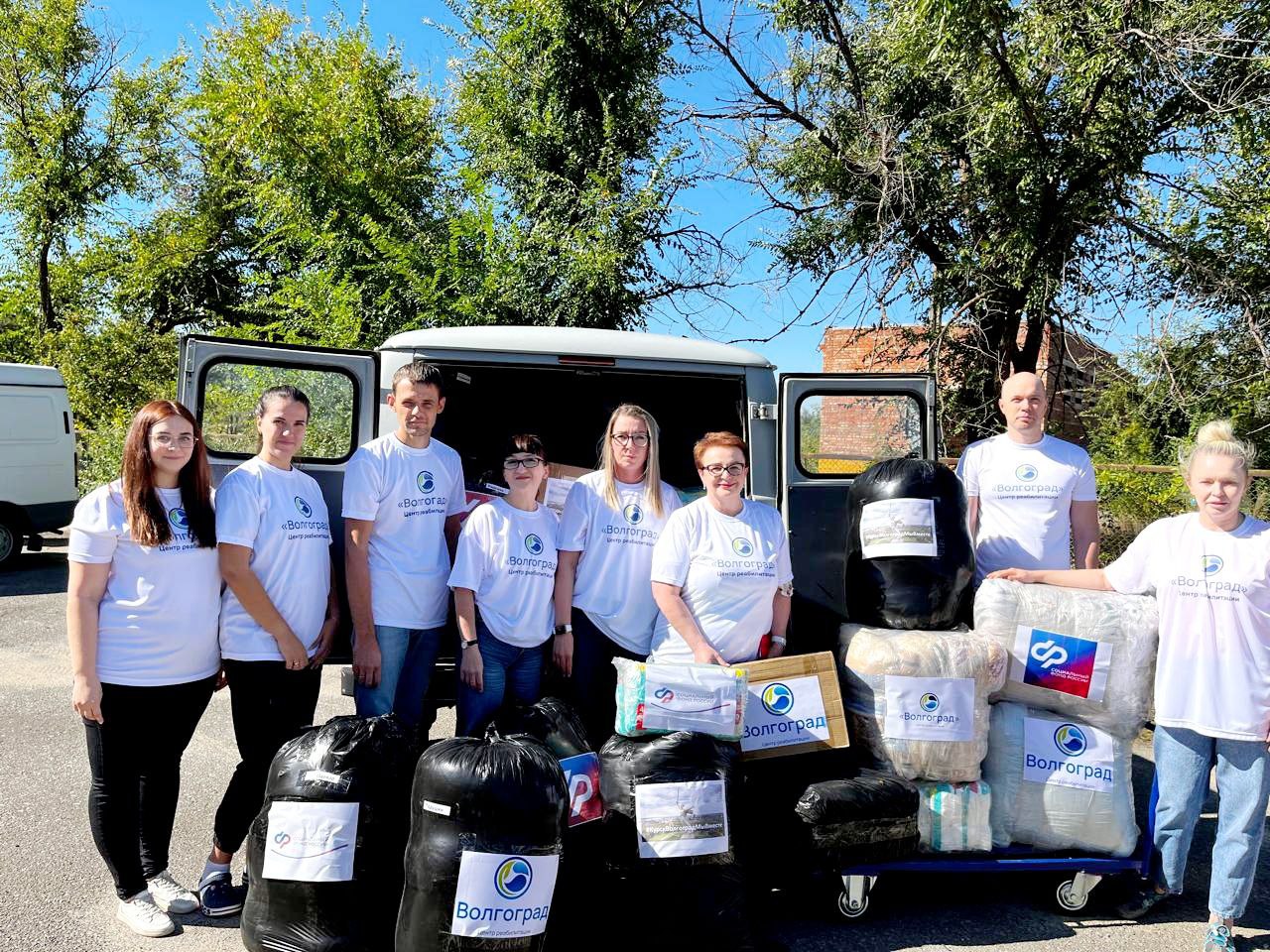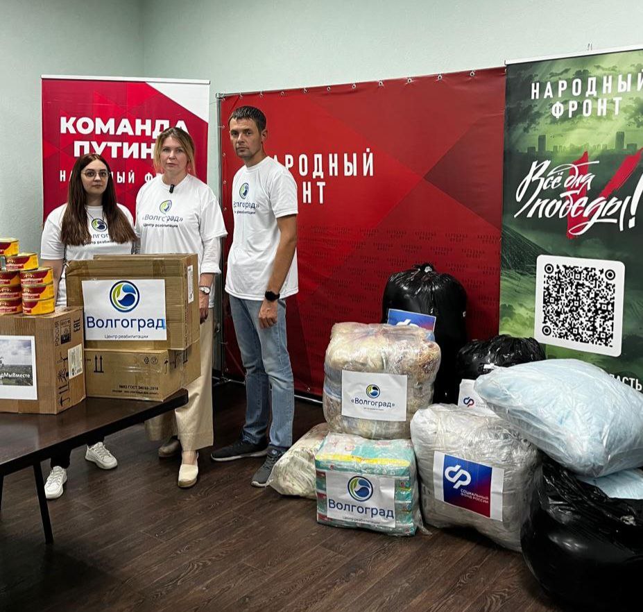 Директор центра реабилитации «Волгоград» Нина Алексеевна Черняева выступила инициатором сбора гуманитарной помощи. Сотрудники центра откликнулись на призыв и собрали средства на которые были приобретены необходимые вещи: одеяла, подушки, постельное бельё, детские подгузники и тушёнка с длительным сроком годности.