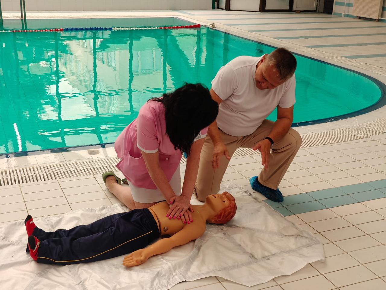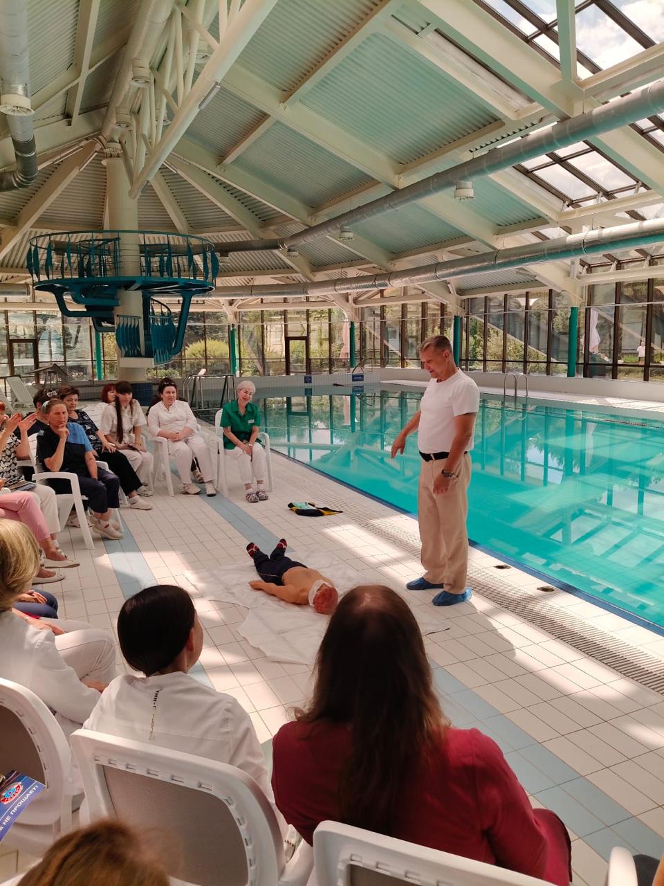 Обучение включало практические занятия у бассейна и теоретическую часть. Сотрудников учили тому, как правильно использовать спасательные круги, жилеты и другие средства, а также как оперативно реагировать в экстренных ситуациях. Особое внимание уделили оказанию первой помощи при сердечно-сосудистых приступах, таких как инсульт и инфаркт, которые могут возникнуть во время купания.