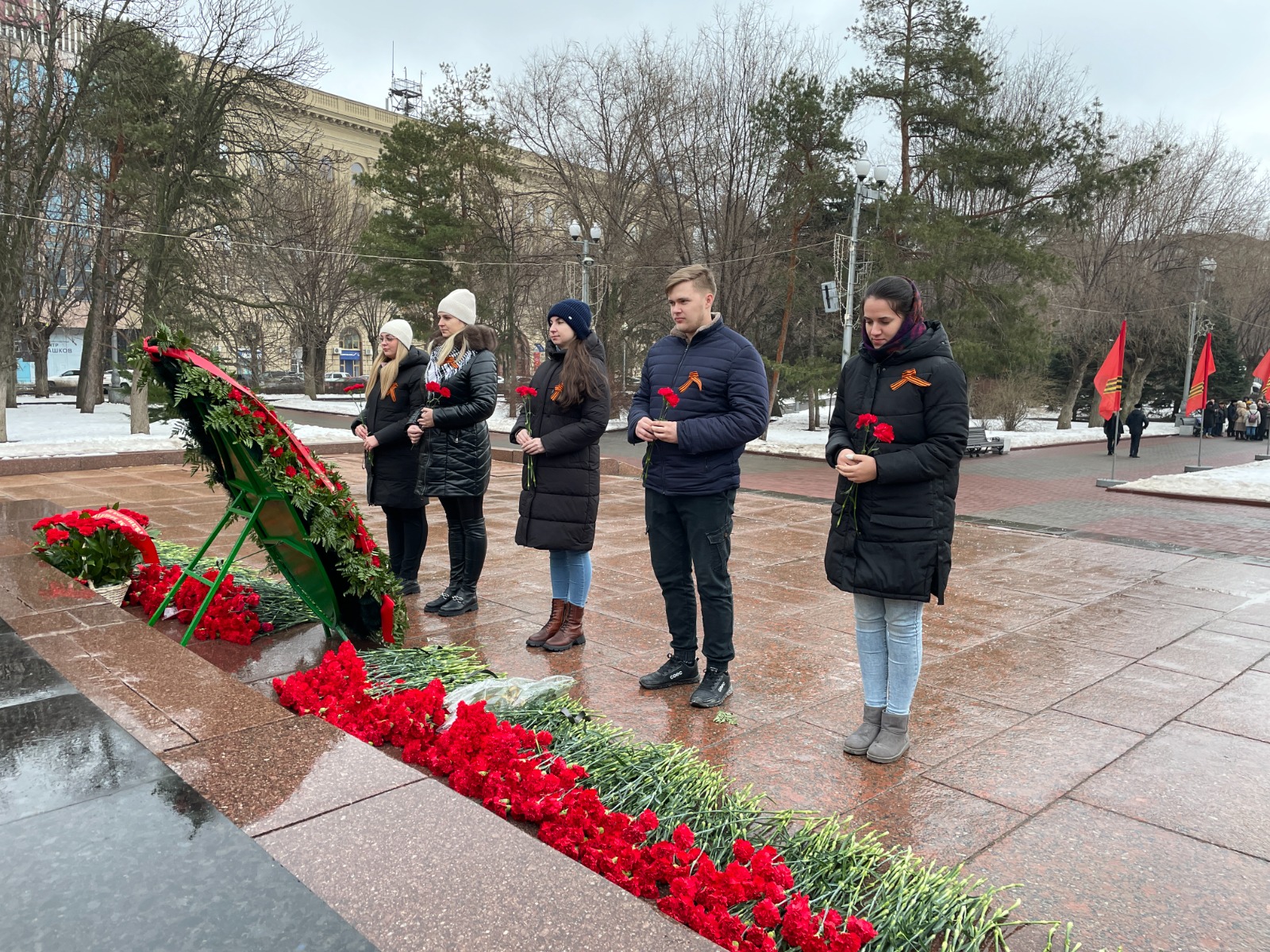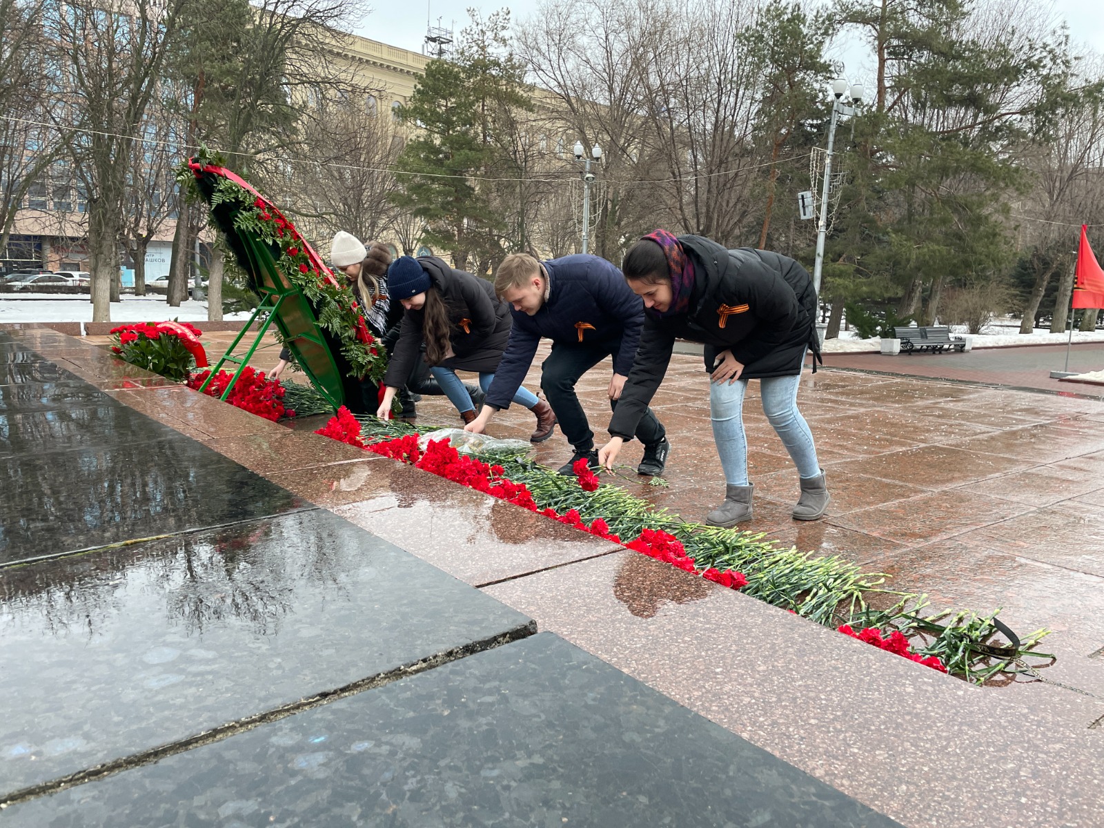 В честь 81-й годовщины Победы на Волге молодежные советы ФБУ Центр реабилитации СФР «Волгоград», Волгоградского отделения Фонда пенсионного и социального страхования Российской Федерации, Управления Росреестра по Волгоградской области, Территориального органа Федеральной службы государственной статистики по Волгоградской области возложили цветы к вечному огню.