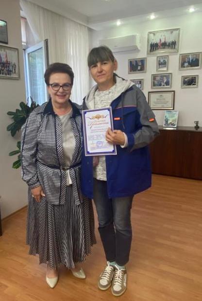 Нина Алексеевна вручила сотрудникам Почётные грамоты за многолетний добросовестный труд в озеленении и благоустройстве территории Центра, высокий профессионализм и личный вклад в создание гармонии и красоты парка.