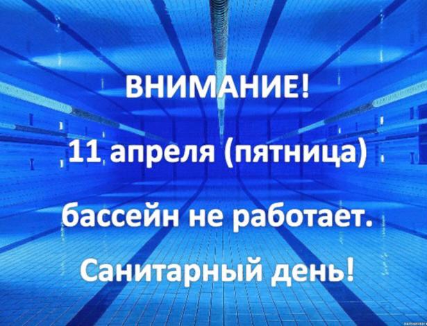Внимание! 11 апреля бассейн не работает! Санитарный день!