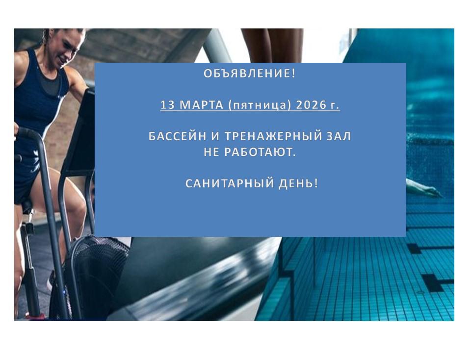 ВНИМАНИЕ! 13 марта бассейн и тренажерный зал не работают. Санитарный день!