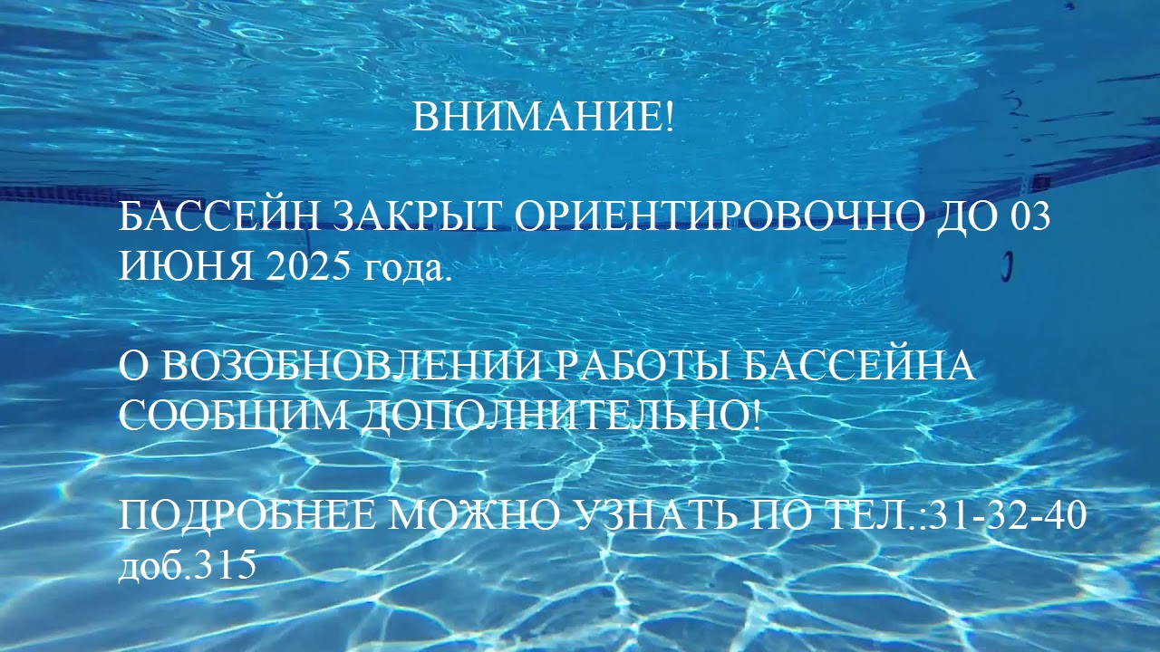 Внимание! Бассейн закрыт ориентировочно до 03 июня 2025 года.
