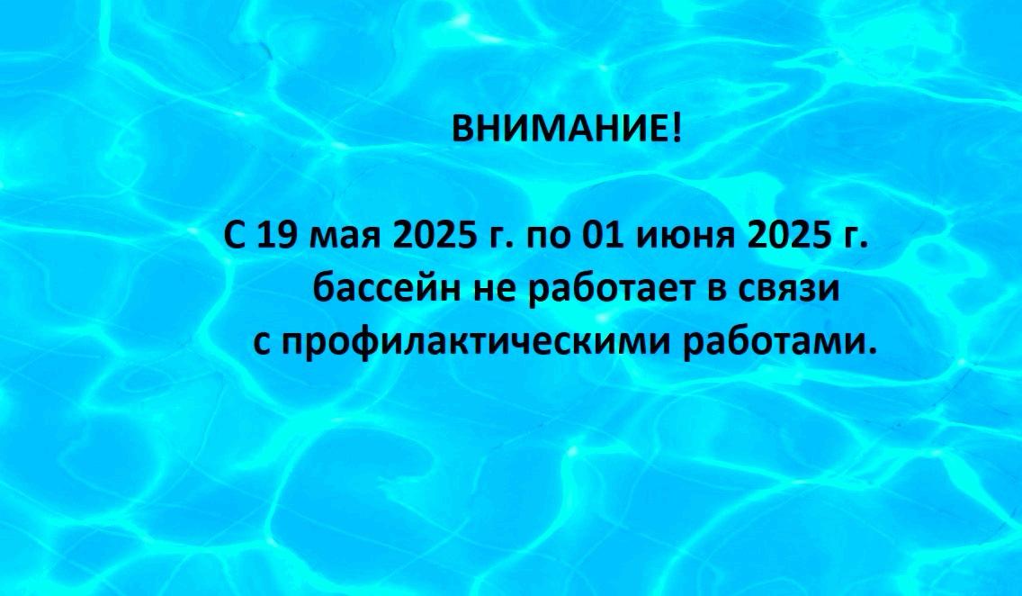 Внимание! С 19 мая 2025 г. по 01 июня 2025 г. бассейн не работает!