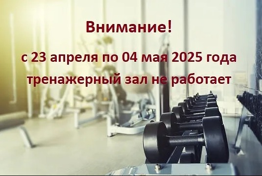 Внимание! С 23 апреля по 4 мая тренажерный зал не работает!