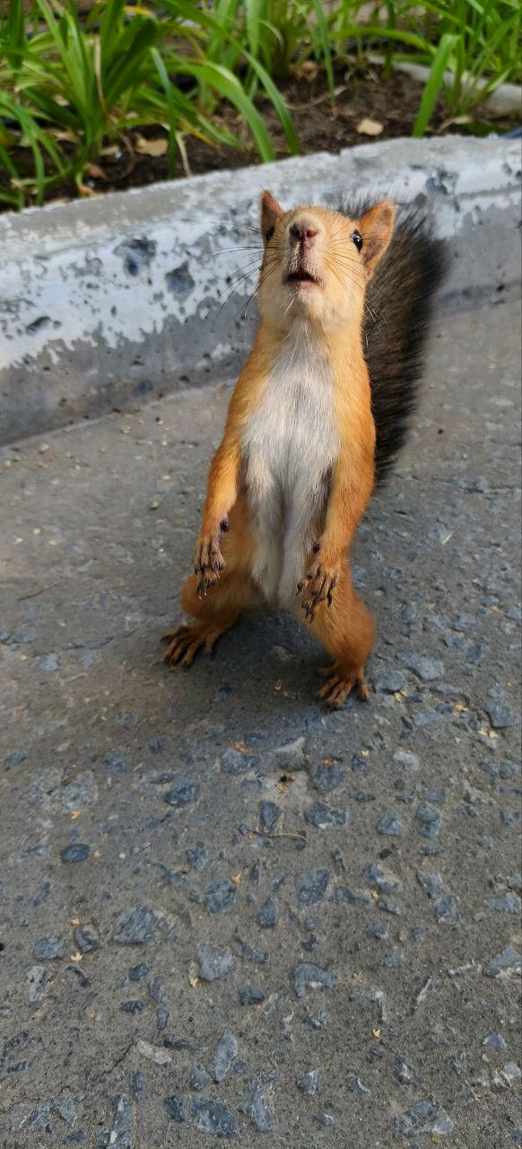 Важный момент: белки — животные, живущие в природной среде. Как бы мило они ни выглядели, они могут укусить, защищаясь. Мы оставили угощения в безопасных местах - в кормушках, которые есть на территории Центра реабилитации.